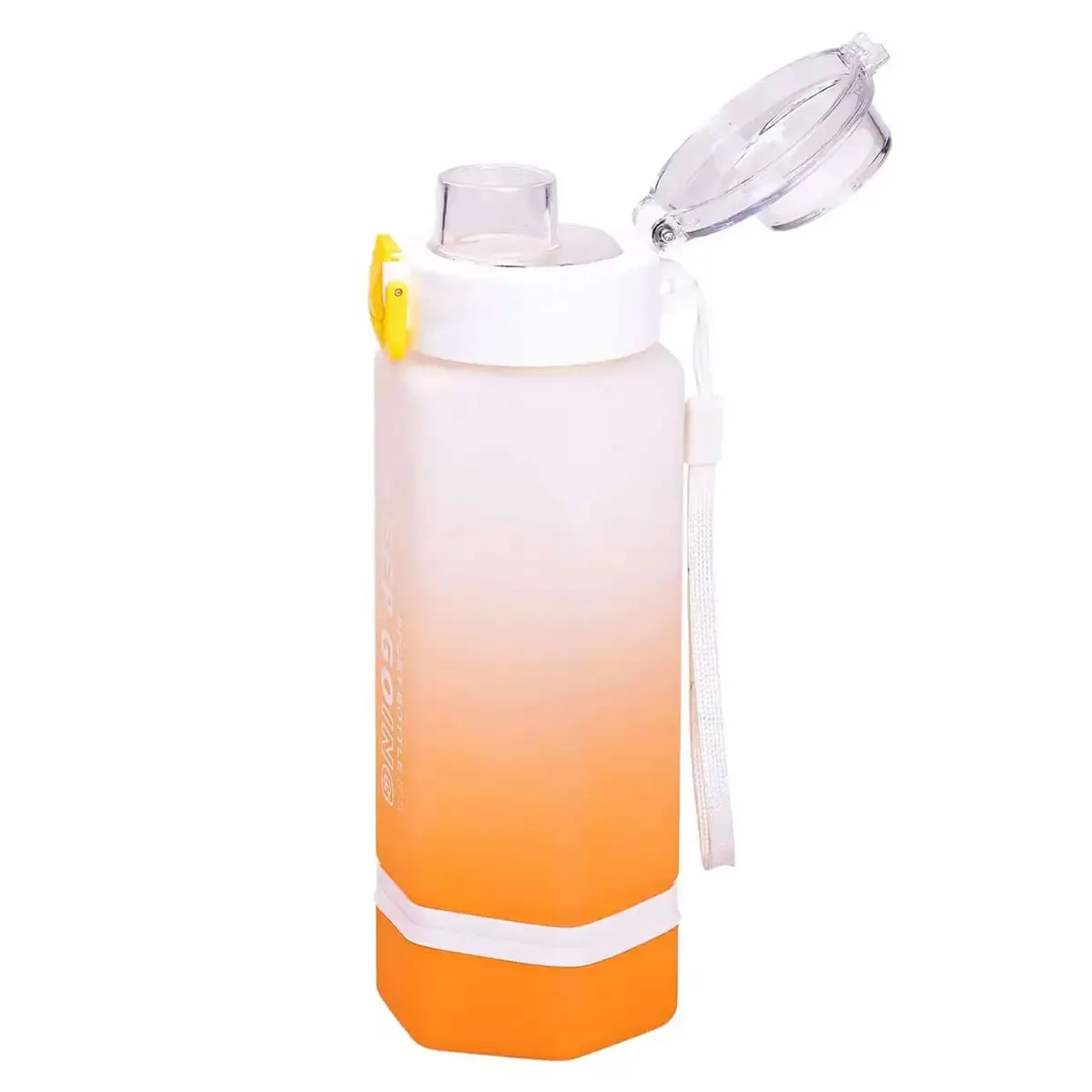 Бутылка Keep Going обладает рядом преимуществ: материал тритан обеспечивает высокую прочность и безопасность, а эргономичный дизайн с кнопочным механизмом повышает комфорт использования. Наличие герметичной крышки исключает протекания, что важно при транспортировке в сумке или рюкзаке. Ремешок облегчает переноску, освобождая руки пользователя.