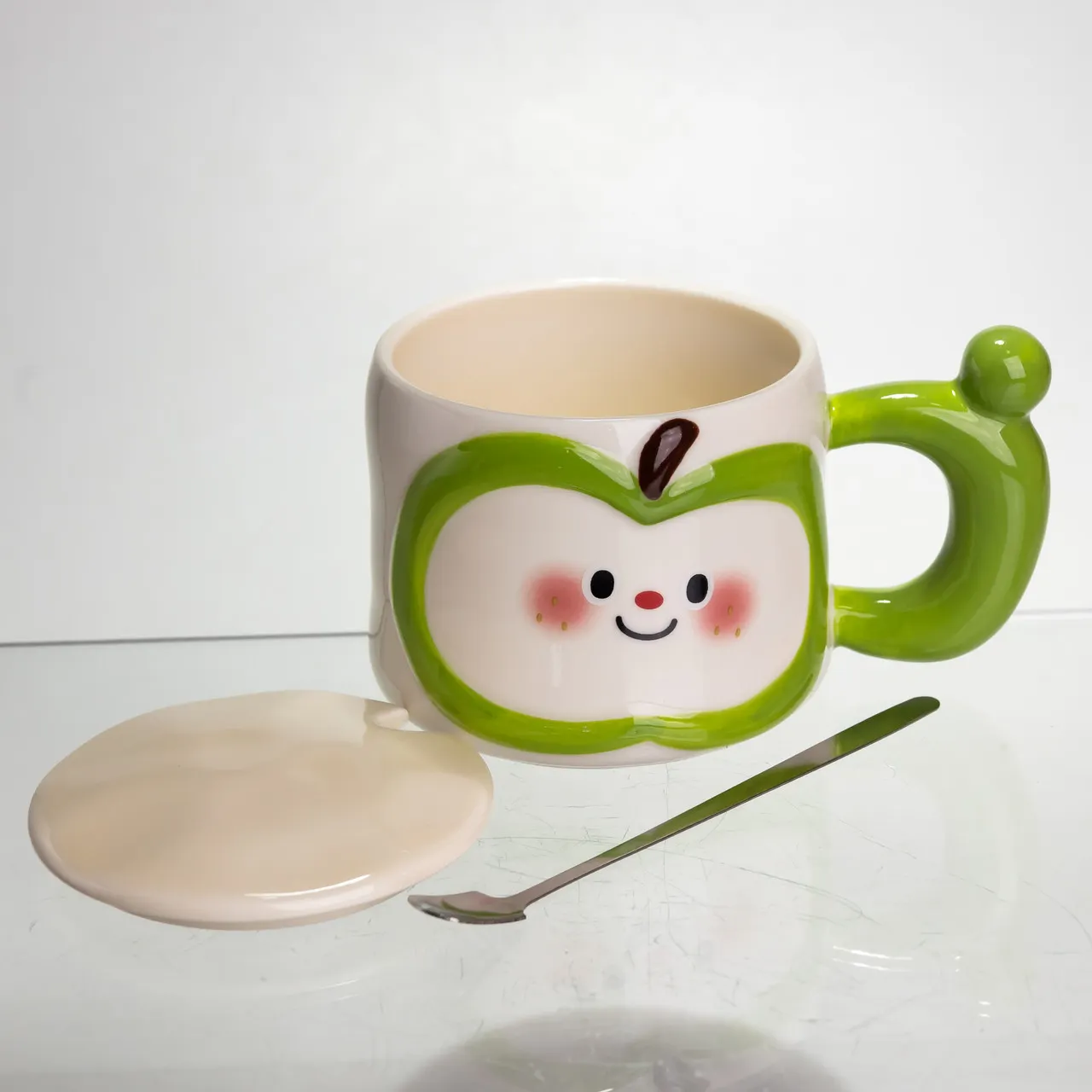 Чашка фарфоровая 400 (мл) с крышкой и ложкой, оригинальная кружка на подарок чашка для детей Зеленый FM-25A
