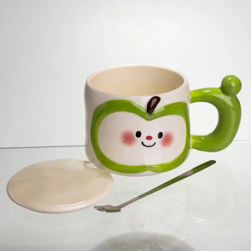 Характеристики "Чашка фарфоровая 400 (мл) с крышкой и ложкой, оригинальная кружка на подарок чашка для детей Зеленый FM-25A"