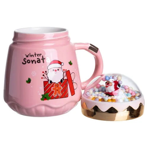 Чашка фарфоровая с крышкой Christmas 400 (мл) Розовый Yiwu FM-CS-41C
