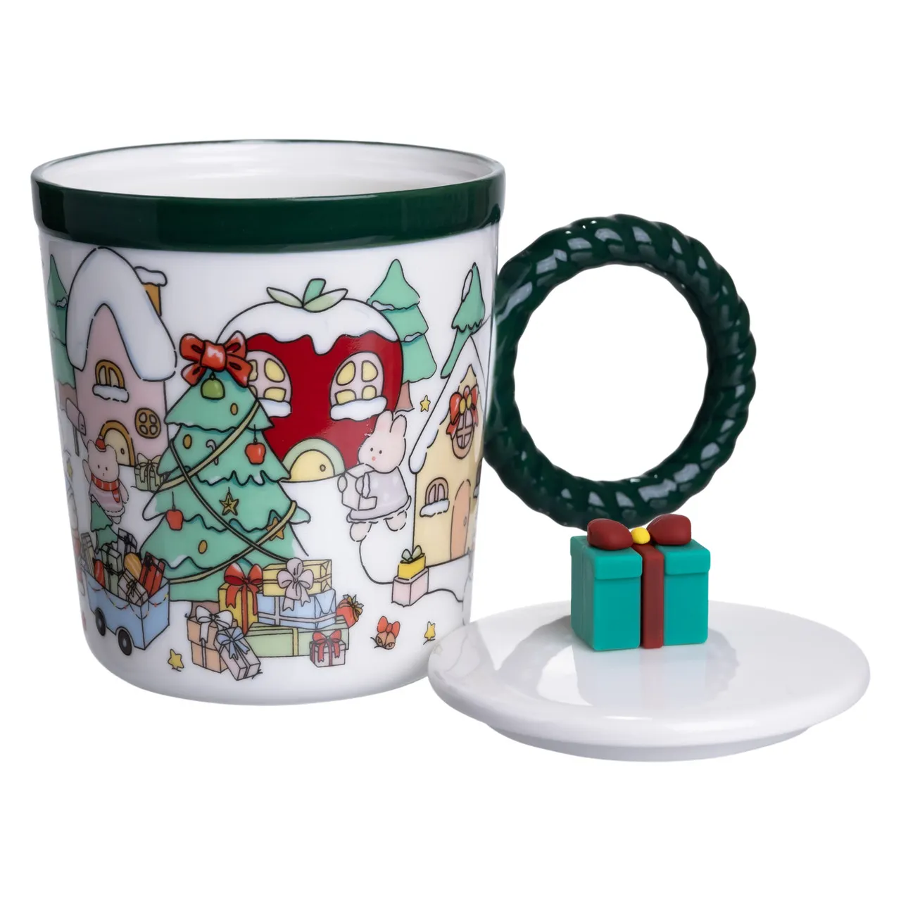 Чашка фарфоровая с крышкой Подарок 400 (мл) Зеленый Yiwu FM-CS-36C