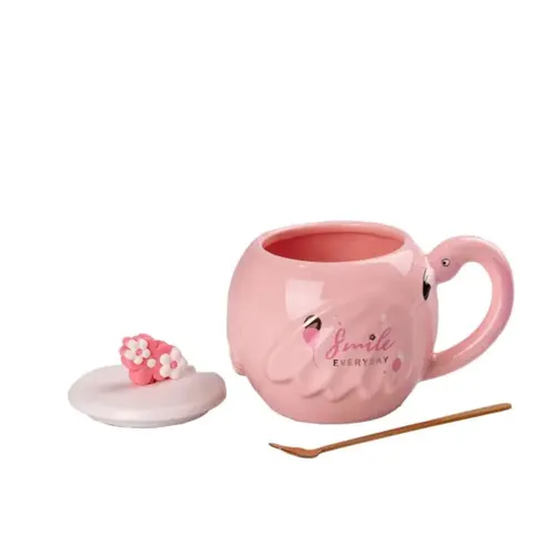 Характеристики "Чашка керамическая Flamingo 500мл с крышкой и ложкой чашки для кофе Smile HPCY8276SM"
