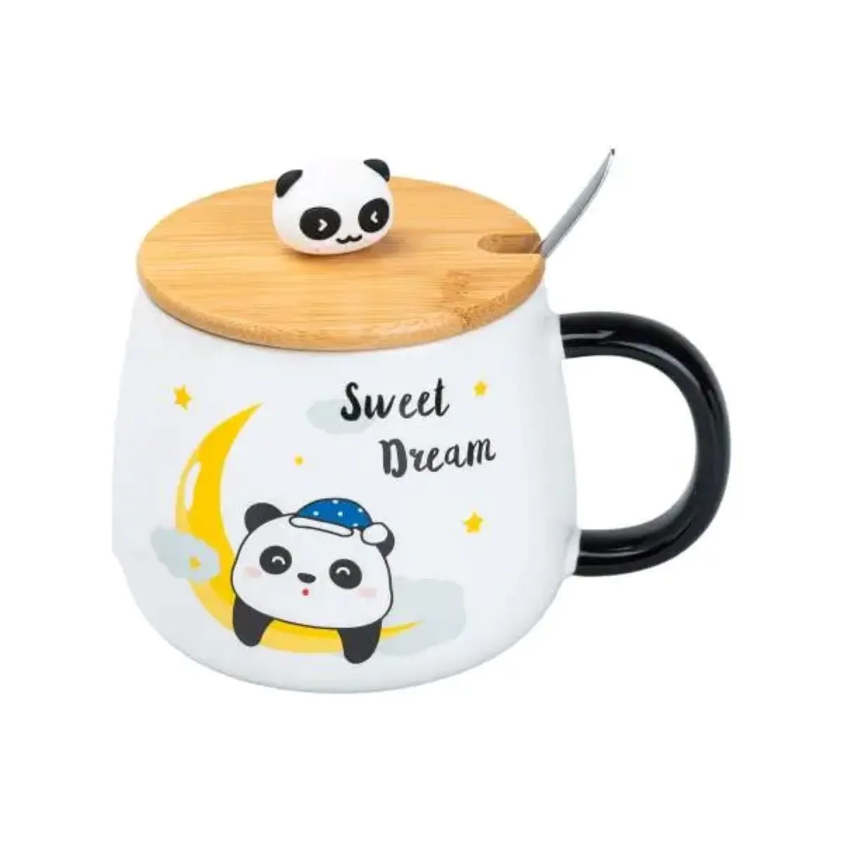 Чашка керамическая Панда 450 мл с бамбуковой крышкой Sweet Dream HP7203M