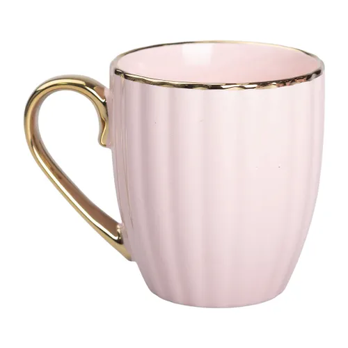 Чашка керамическая с золотым ободком и золотой ручкой 420 (мл) Розовая RX-N240629P