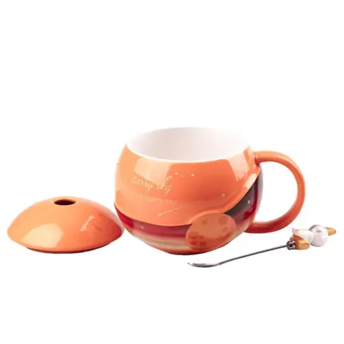 Характеристики "Чашка керамическая Starry Sky 400мл с крышкой и ложкой Оранжевый HP877O"