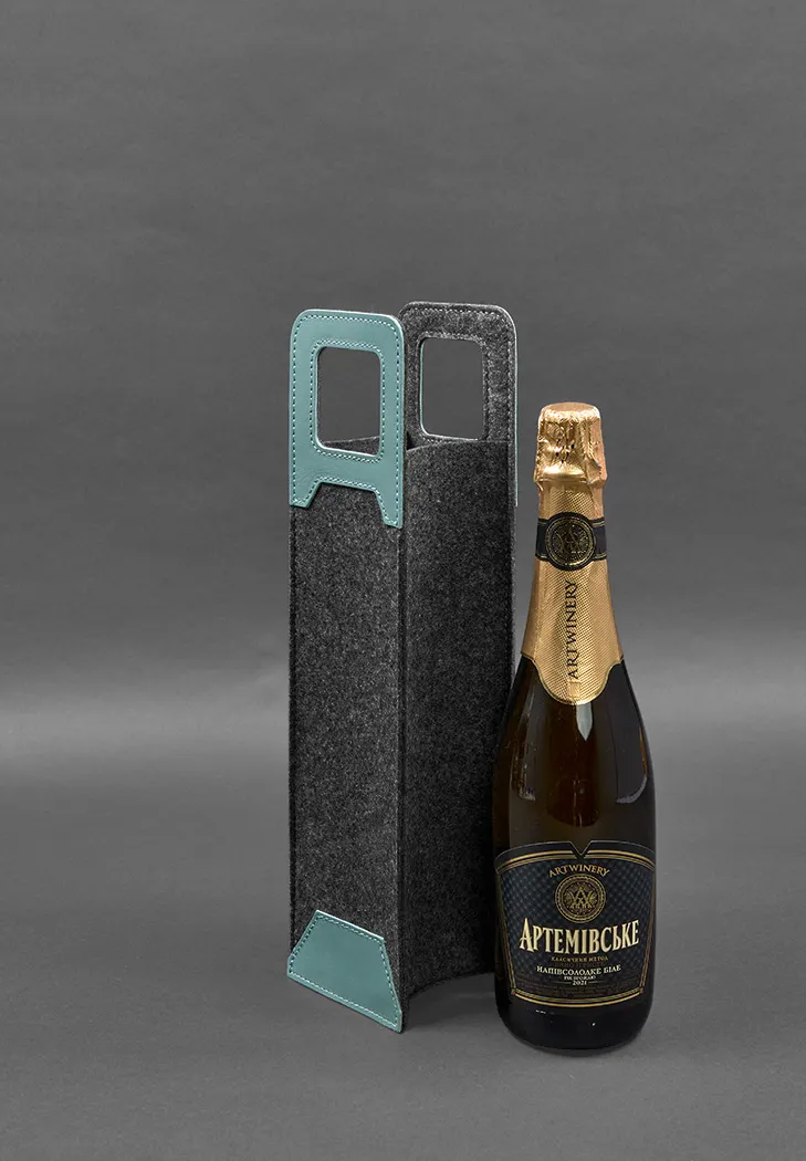 Характеристики "Чехол для вина 1.0 из фетра с кожаными вставками бирюзовый Краст"