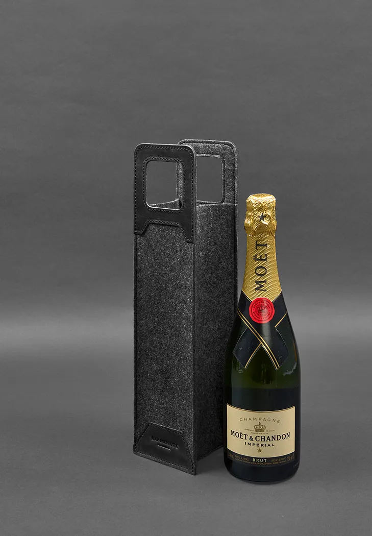 Чехол для вина 1.0 из фетра с кожаными вставками черный Crazy Horse