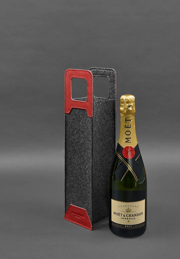 Чехол для вина 1.0 из фетра с кожаными вставками красный Краст