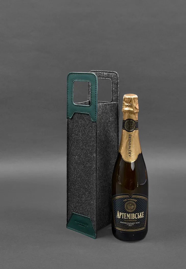 Характеристики "Чехол для вина 1.0 из фетра с кожаными вставками зеленый Краст"