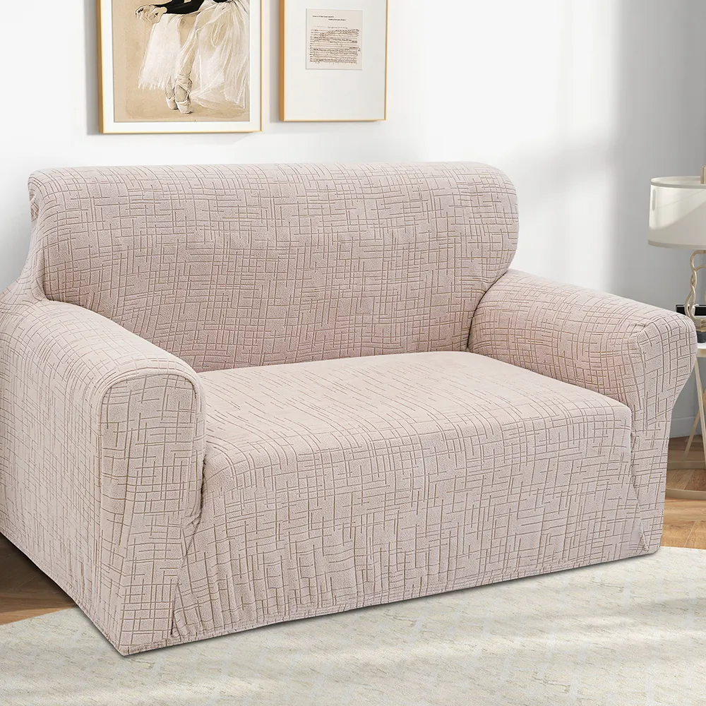 Ключевой особенностью модели является использование высококачественного стрейчевого трикотажа, который сочетает в себе прочность и эластичность. Это позволяет чехлу идеально обтягивать диван, повторяя формы сиденья, спинки и подлокотников. Специально разработанная структура жаккарда придает поверхности интересный рельеф и визуальную глубину, добавляя интерьеру стильности.