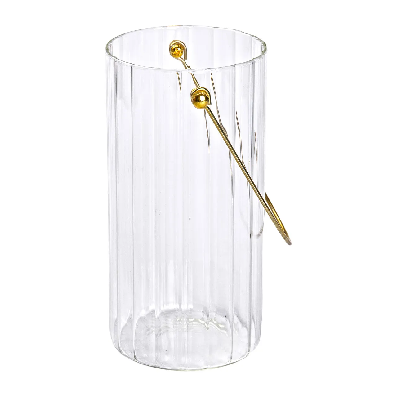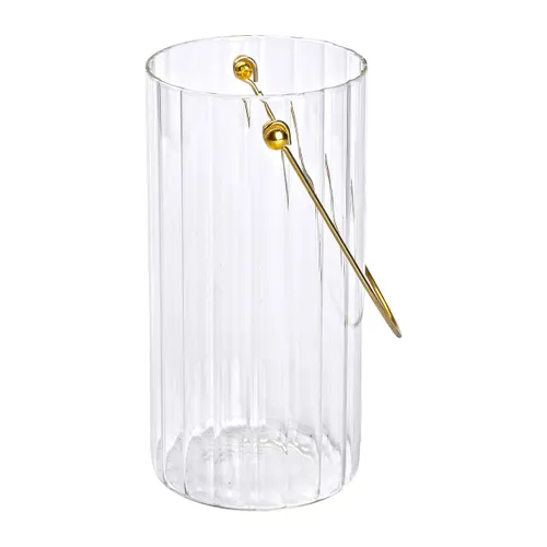 Декоративная стеклянная ваза для цветов с ручкой высотой 19,5 см — это практичный и стильный аксессуар для украшения интерьера. Она выполнена из прозрачного стекла, что подчеркивает красоту цветочных композиций и позволяет им выглядеть максимально естественно. Благодаря гладкому круглому горлышку и цилиндрической форме, ваза легко воспринимается визуально и подходит для различных видов цветов и сухоцветов.