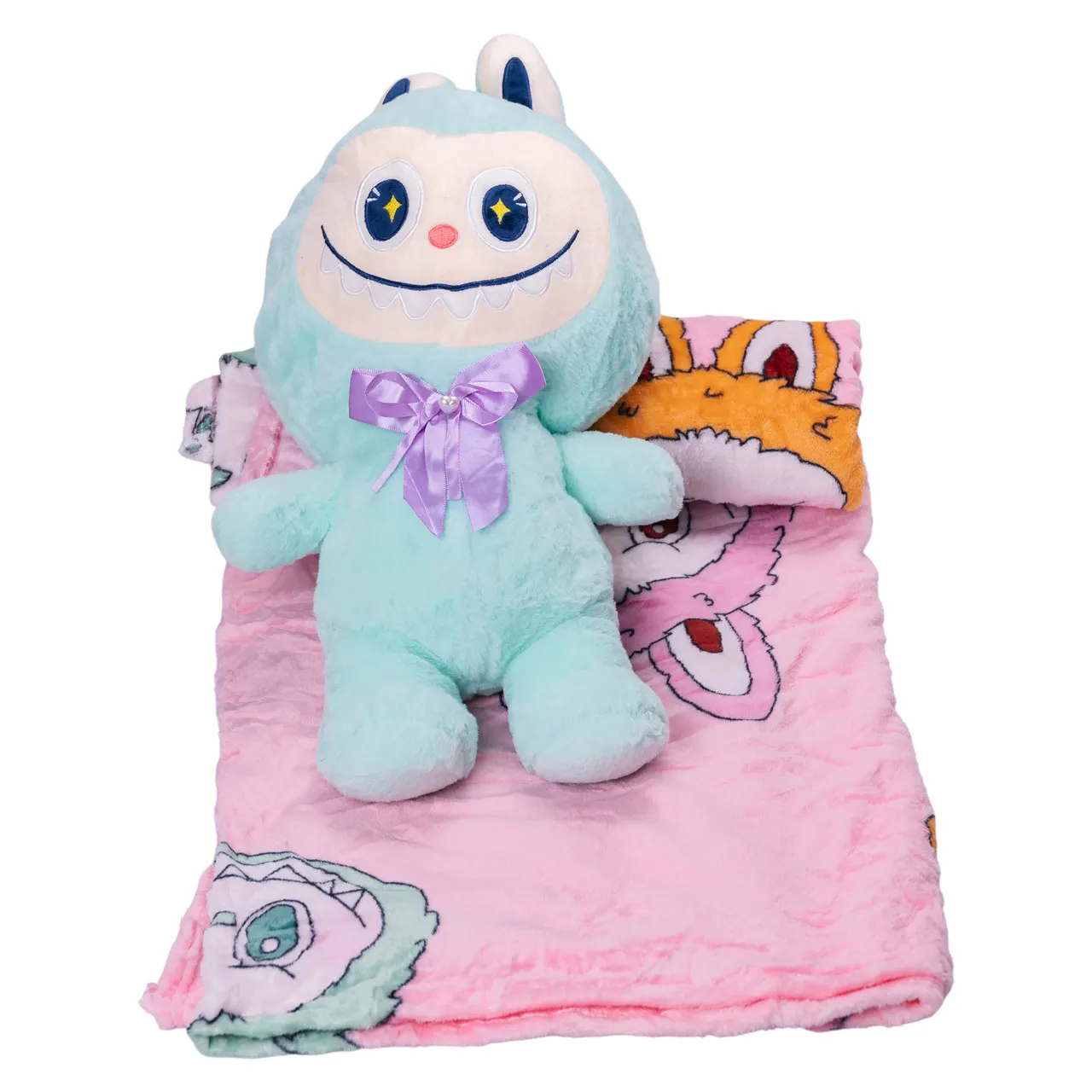 Детская мягкая игрушка Лабубу с пледом 54 см плюшевая Мятная ТМ COLORFUL HOME LAB3M