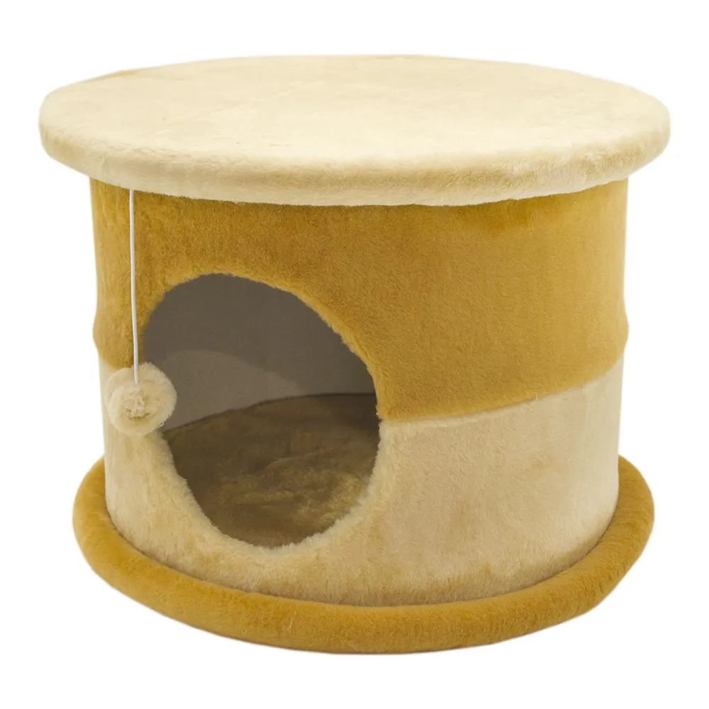 Изделие изготовлено из мягкого искусственного меха и занимает в доме минимум места: его основа составляет 44х44 см, а высота – 30 см. Цвет решения – бежевый с коричневыми акцентами, что делает его подходящим к разным интерьерным решениям.