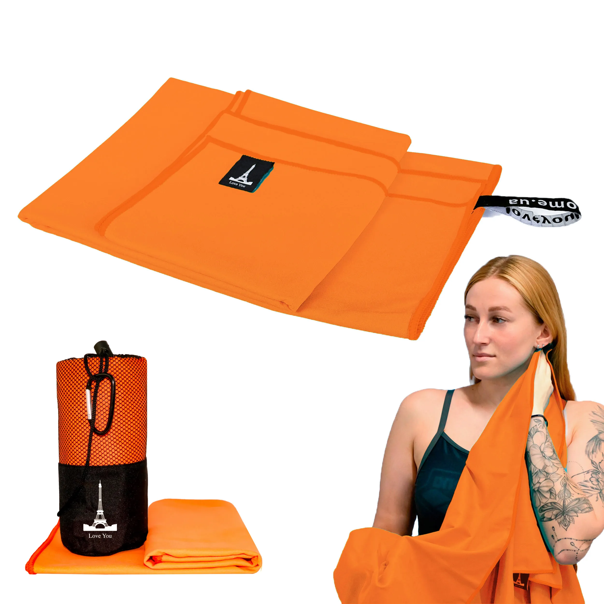 Дорожной спортивный полотенце Love You из микрофибры с чехлом оранжевый 80x180