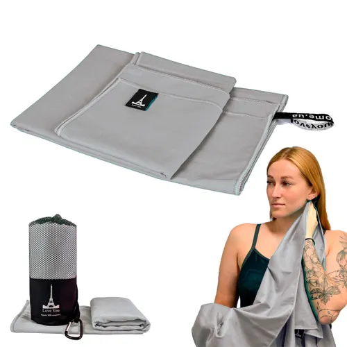 Характеристики "Дорожной спортивный полотенце Love You из микрофибры с чехлом Светло-серый 80х180"