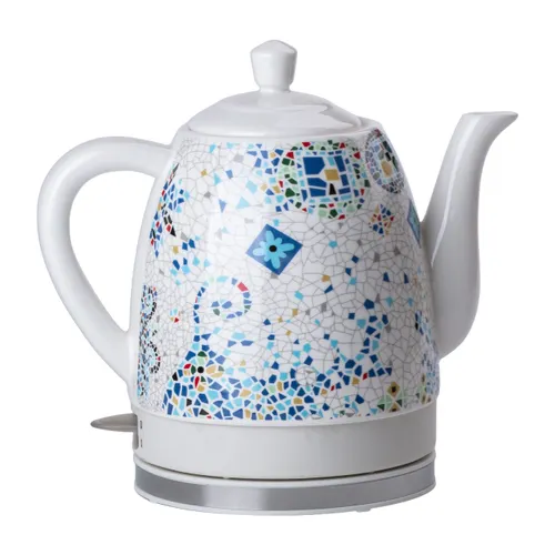 Корпус устройства выполнен из керамики, что придает ему эстетичный внешний вид и устойчивость к изменениям температуры. Продуманная форма и белый цвет корпуса позволяют прибору легко вписаться в любой интерьер кухни, а узоры на корпусе добавляют неповторимый стиль.
