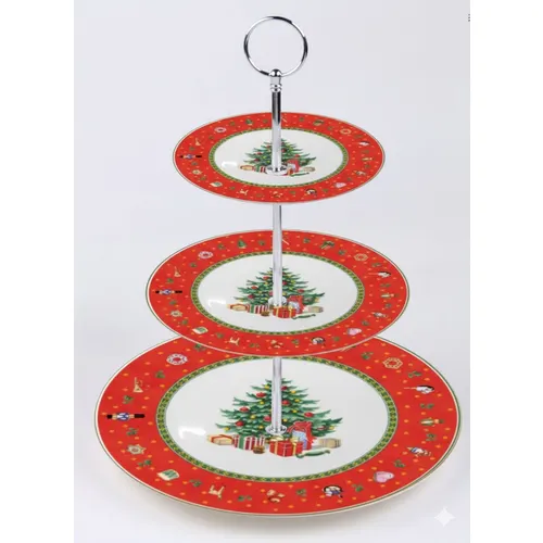 Этажерка фарфоровая для фруктов трёхъярусная Christmas 34 см HP-SDHK-8