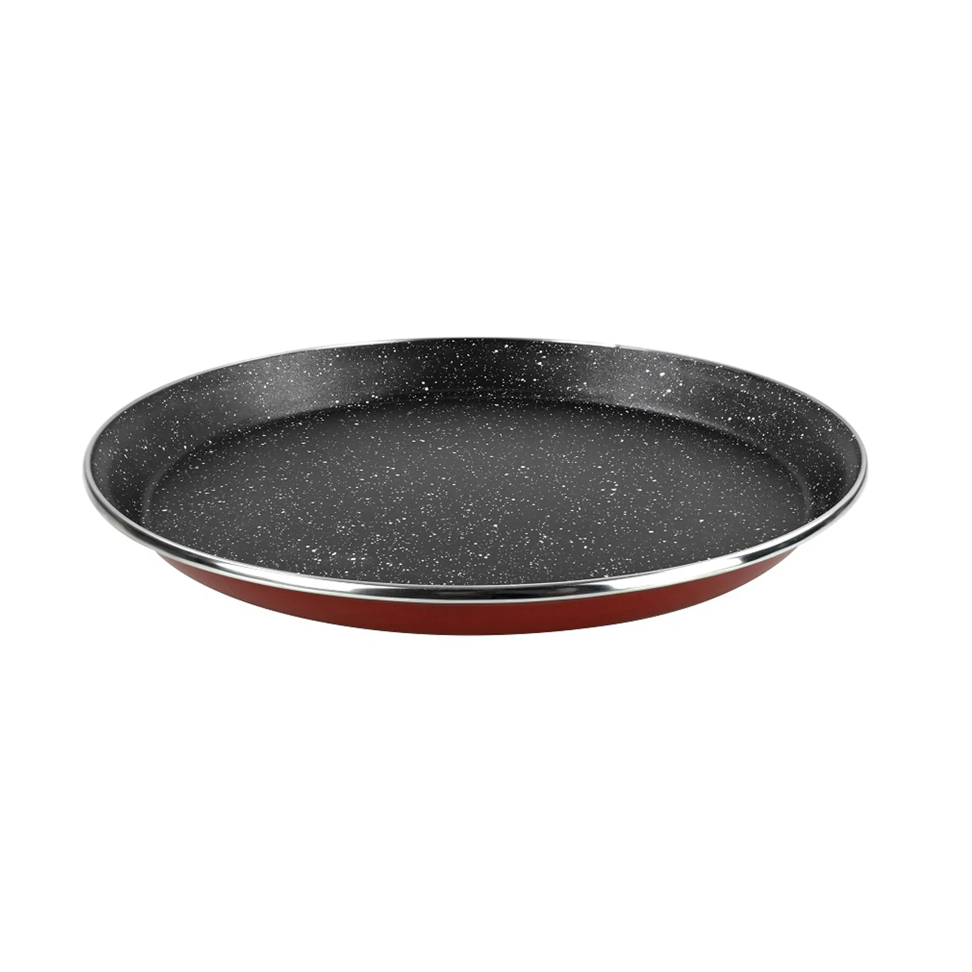 Двошарова емаль забезпечує захист корпусу від механічних пошкоджень та запобігає іржі. При цьому матеріал форми рівномірно розподіляє тепло, що гарантує ідеальне пропікання піци по всій площі, без сирих або пересушених ділянок.