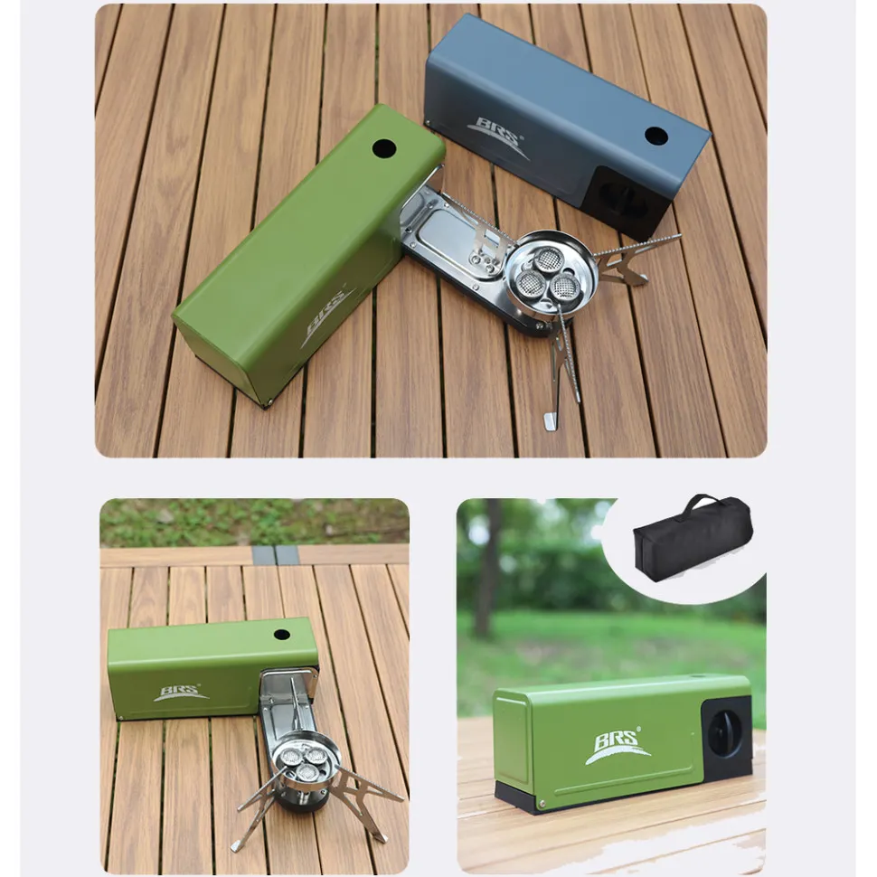 Горелка BRS-97 активируется п’єзоподжигом и имеет встроенную ветрозащиту, чтобы сильные порывы ветра не гасили пламя. Сложные зубчатые подставки позволяют устанавливать походную посуду диаметром от 100 до 260 мм.