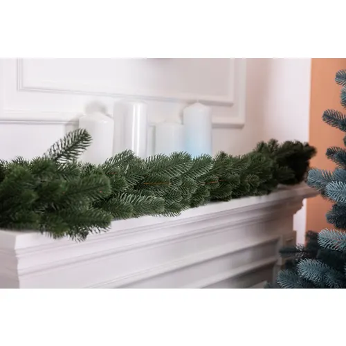 Ее зеленый цвет насыщенный и естественный, что позволяет использовать изделие как в домашних условиях, так и на открытых площадках. Материал устойчив к выгоранию под воздействием солнечных лучей, благодаря чему гирлянда сохраняет привлекательный внешний вид длительное время. Она не осыпается и не теряет форму, что отличает товар премиум-класса от аналогичных моделей.