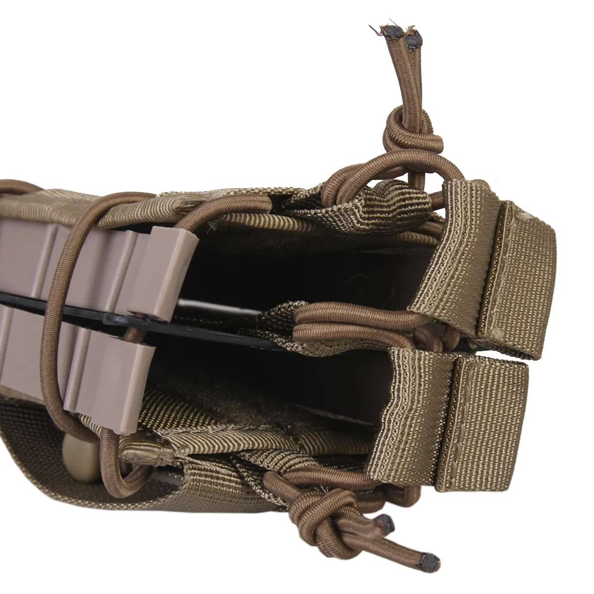 Результат надежно фиксирует магазины. Тактический итог для магазинов может вместить, включая, но не ограничиваясь, 30-зарядные магазины M4/M16, M14, HK416, G36/ARC/PMAG/5.56/.223/AK 30/40-зарядные магазины. Магазины будут хорошо укладываться и легко доступны. Бока итога сделаны из ударопрочного пластика.