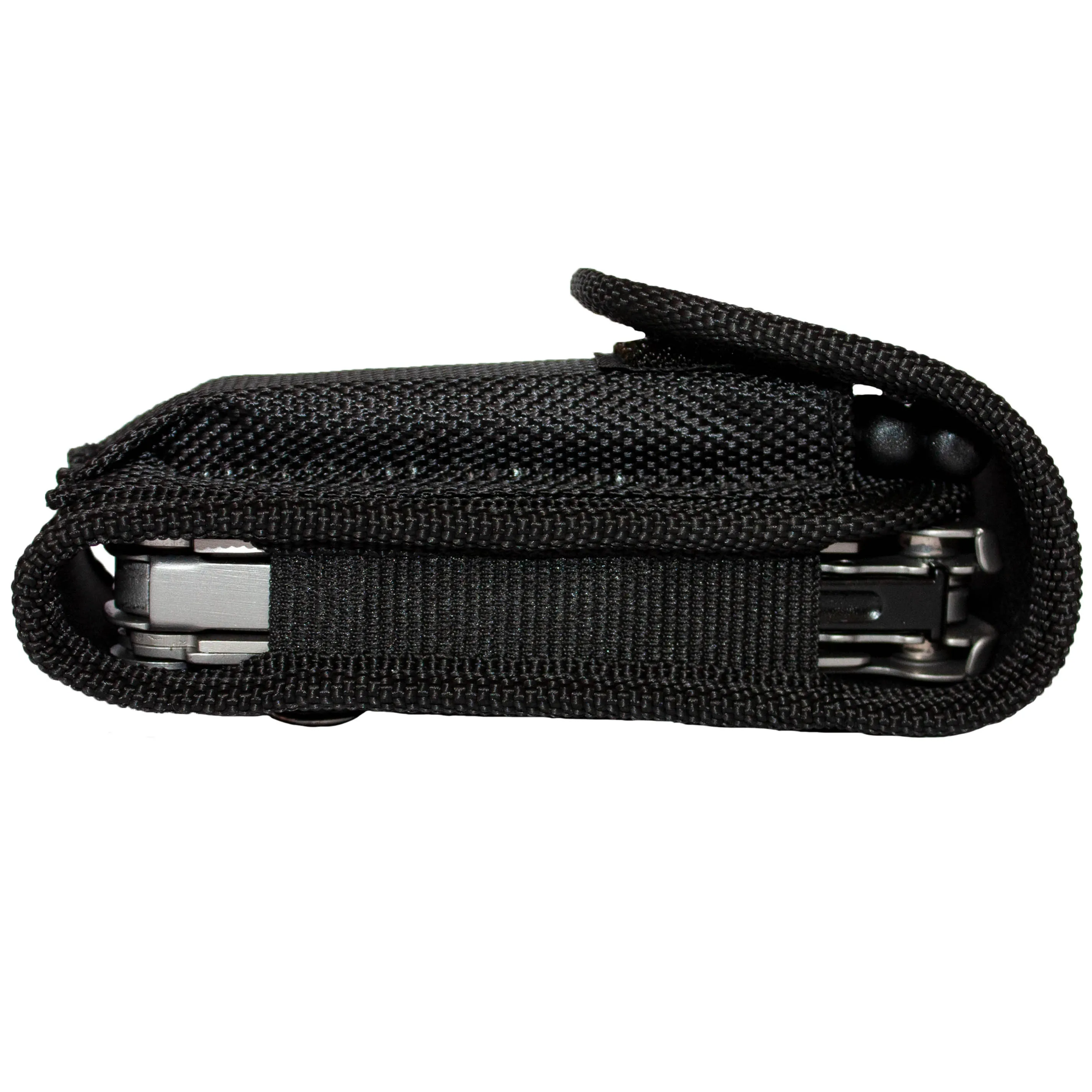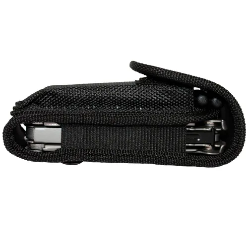 Боковые стенки на резинках автоматически подстраиваются под толщину мультитула, обеспечивая надежное удержание. Дополнительный отсек позволяет хранить набор бит или другие мелкие предметы, такие как зажигалка. Чехол изготовлен из нейлона, что гарантирует его прочность и долговечность.