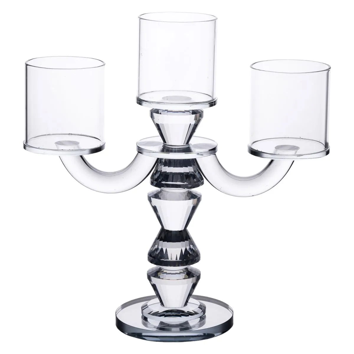 Канделябр на 3 свечи 22×9×23 см подсвечник декоративный стеклянный на ножке прозрачный HP-4-30