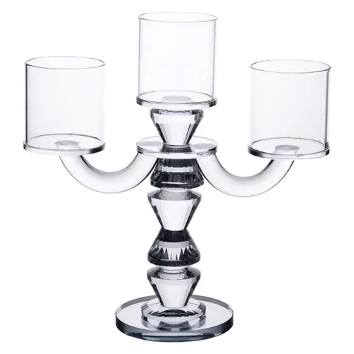 Основным плюсом данного стеклянного подсвечника является его универсальность и способность вписываться в разные стилистические направления интерьера. Прозрачные элементы создают эффект лёгкости и визуального расширения пространства, при этом канделябр становится ярким акцентом на столе или полке.