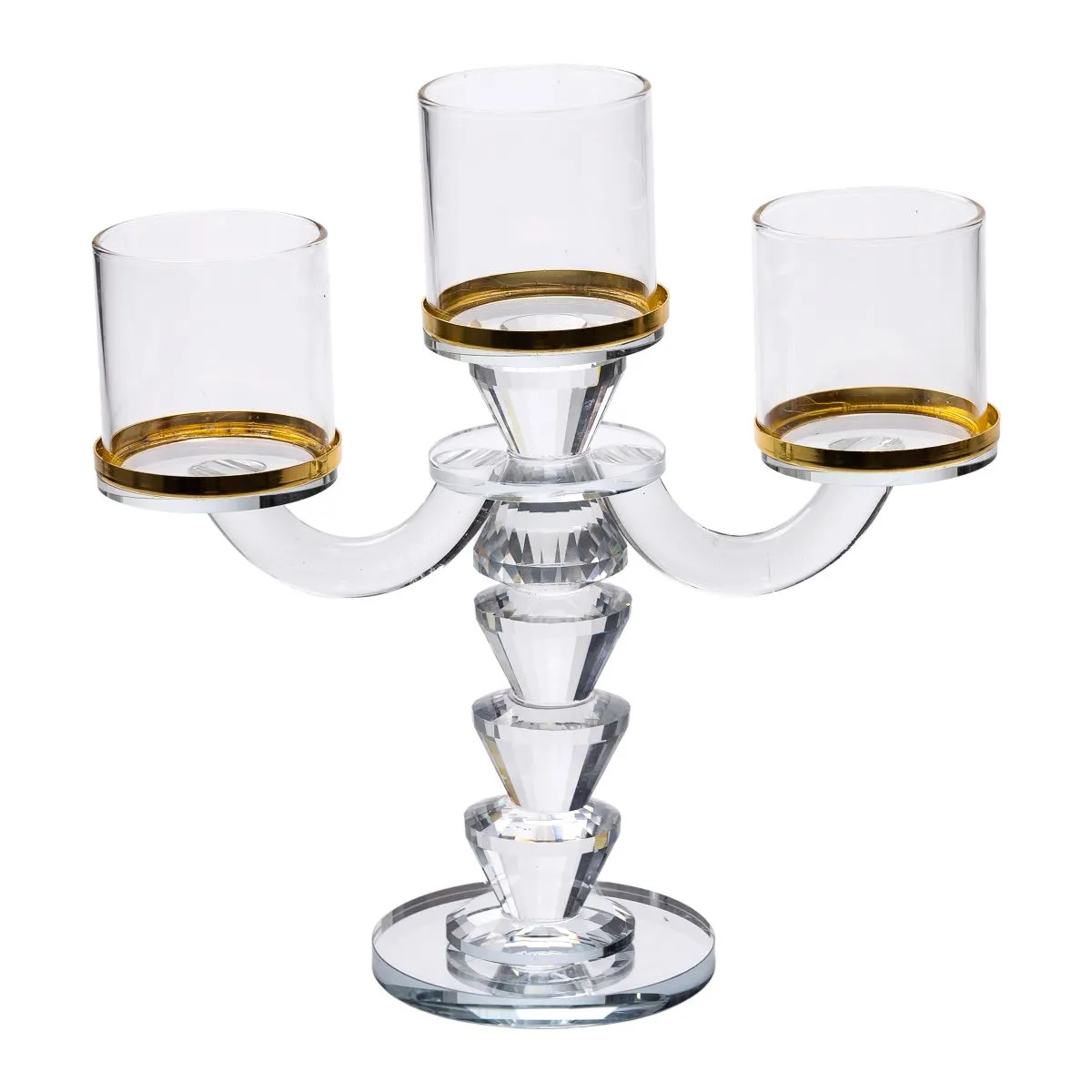 Канделябр на 3 свечи 23×9×23.5 см подсвечник стеклянный декоративный c золотой окантовкой HP-4-35