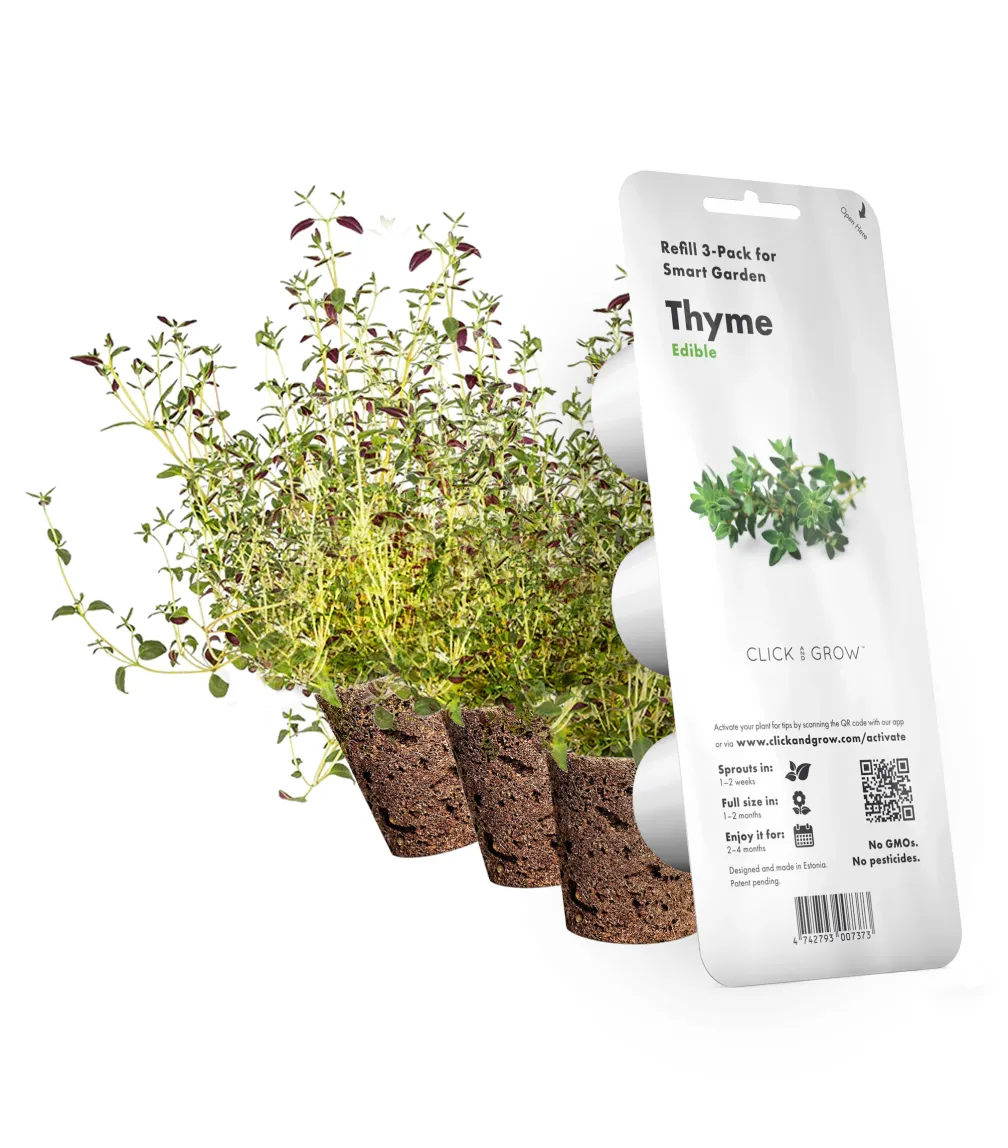 О: Тимьян отличается высокой устойчивостью к болезням, особенно в среде Click&Grow, где исключены химические вмешательства.
