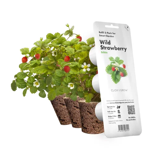 Картридж для умной фермы Click&Grow с дикой земляникой — это инновационный способ насладиться сладкими и ароматными ягодами круглый год. Яркий символ лета, земляника приносит утешение и незабываемые вкусовые впечатления. Нежный аромат и утонченный вкус делают ее одной из самых любимых ягод во всем мире. Земляника не только вкусна, но и полезна: это настоящий кладезь витаминов и антиоксидантов, который благотворно влияет на здоровье и подходит для здорового образа жизни.