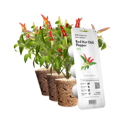 Острый перец чили в сочетании с smart Garden Click & Grow — это невероятная жгучесть и свежее дополнение к домашней кухне. Выращивание перца чили становится на 100% беспроблемным благодаря этому внутреннему саду. Вы сможете с наслаждением пережить опыт "от сада к тарелке" на вашей собственной кухне.