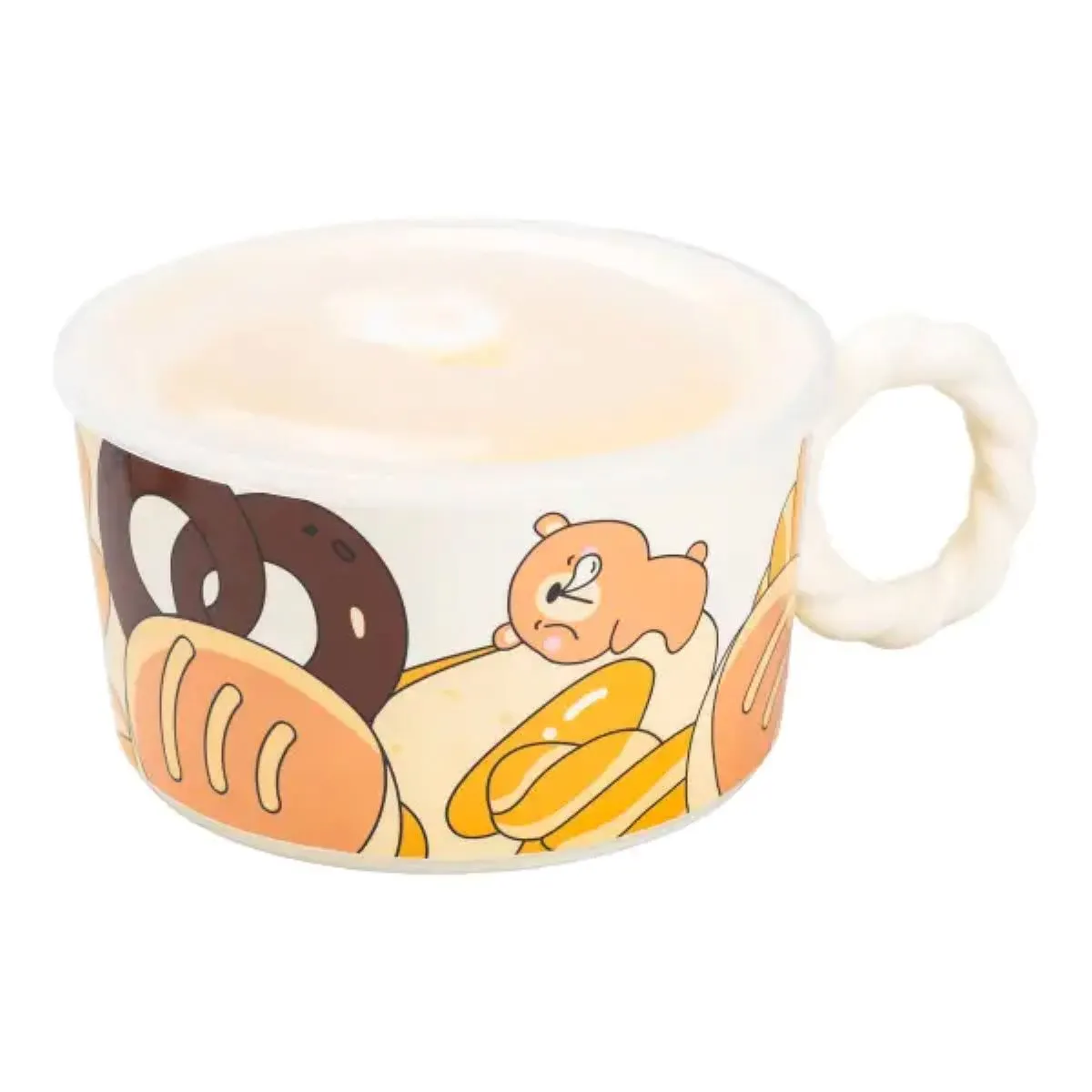 Характеристики "Керамическая бульонница 800 мл с пластиковой крышкой Мишка супница миска для лапши HP7215B"