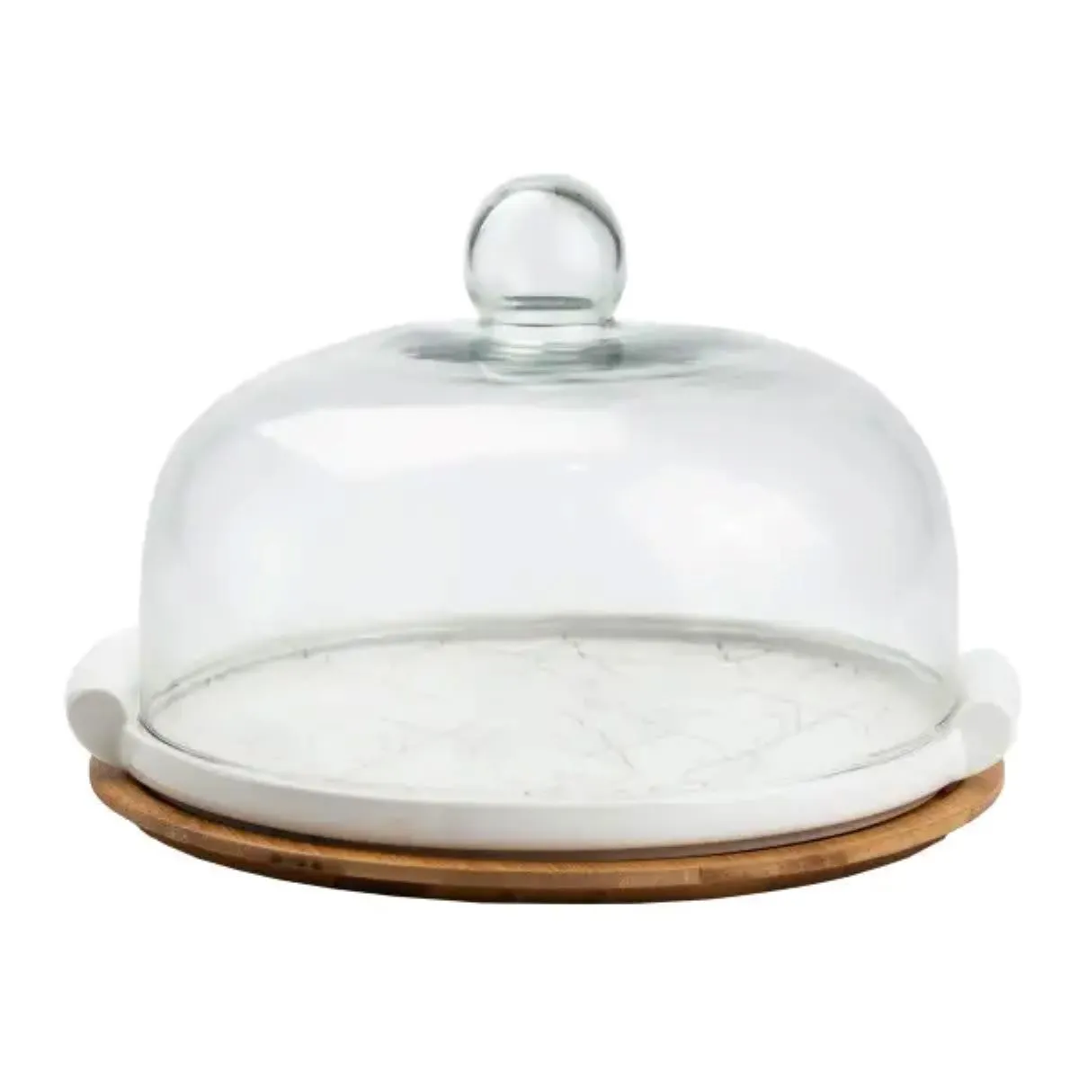 Керамическая тортовница со стеклянной крышкой на бамбуковой подставке HP1203
