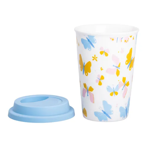 Керамический стакан с силиконовой крышкой и отверстием для трубочки 420 (мл) кружка без ручки RX-N240546W