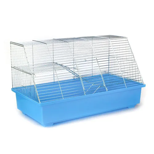 Эта клетка средней величины имеет прямоугольную конструкцию с лицевой наклонной стороной, что позволяет максимально использовать внутреннее пространство. Она изготовлена из безопасных для животных материалов с применением современных европейских технологий цинкования, что гарантирует долговечность и защиту от коррозии.