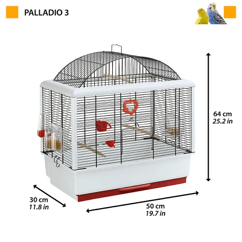 Серия Palladio представлена тремя размерами: Palladio 3, Palladio 4 и Palladio 5. Выбор конкретной модели зависит от размера и активности птиц. Palladio 3 оптимален для одиночных или парных небольших птиц, которые нуждаются в уютном пространстве с базовым набором аксессуаров.