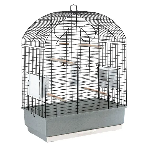 Клітка виготовлена з високоякісних матеріалів: металевої проволоки з порошковим пластиковим покриттям, яке запобігає корозії та полегшує догляд. Покриття гладке і безпечне для пташиного оперення, не викликає алергічних реакцій. Закруглена дах створює додатковий простір над головою птахів, що підвищує їхній комфорт і дозволяє вільно пересуватися.