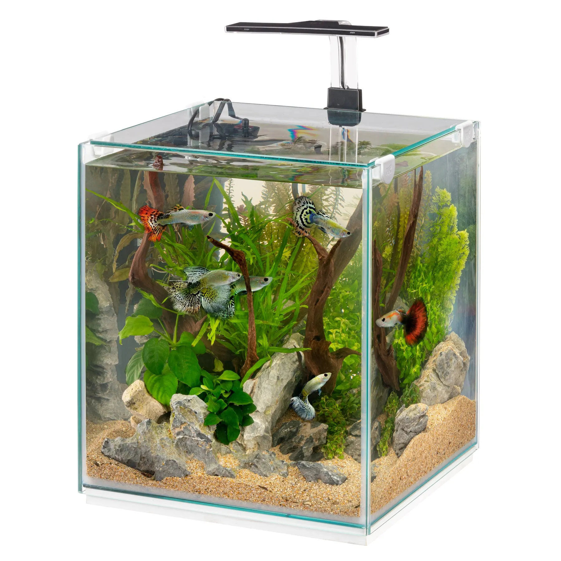 Компактный стеклянный аквариум, оснащённый светодиодной лампой, многоступенчатым внутренним фильтром и терморегулятором. 30 x 30 x h 46 cm - 30 L ТОNGA 30 - 30 Л