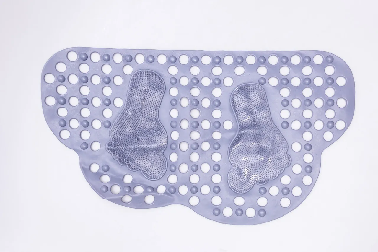 Прорезиненное антискользящее покрытие обеспечивает отличное сцепление с поверхностью и надежное удержание стопы, минимизируя риск падений. Перфорированная структура с множеством дренажных отверстий способствует быстрому отводу воды и предотвращает накопление мыльной пены, что увеличивает безопасность и комфорт.