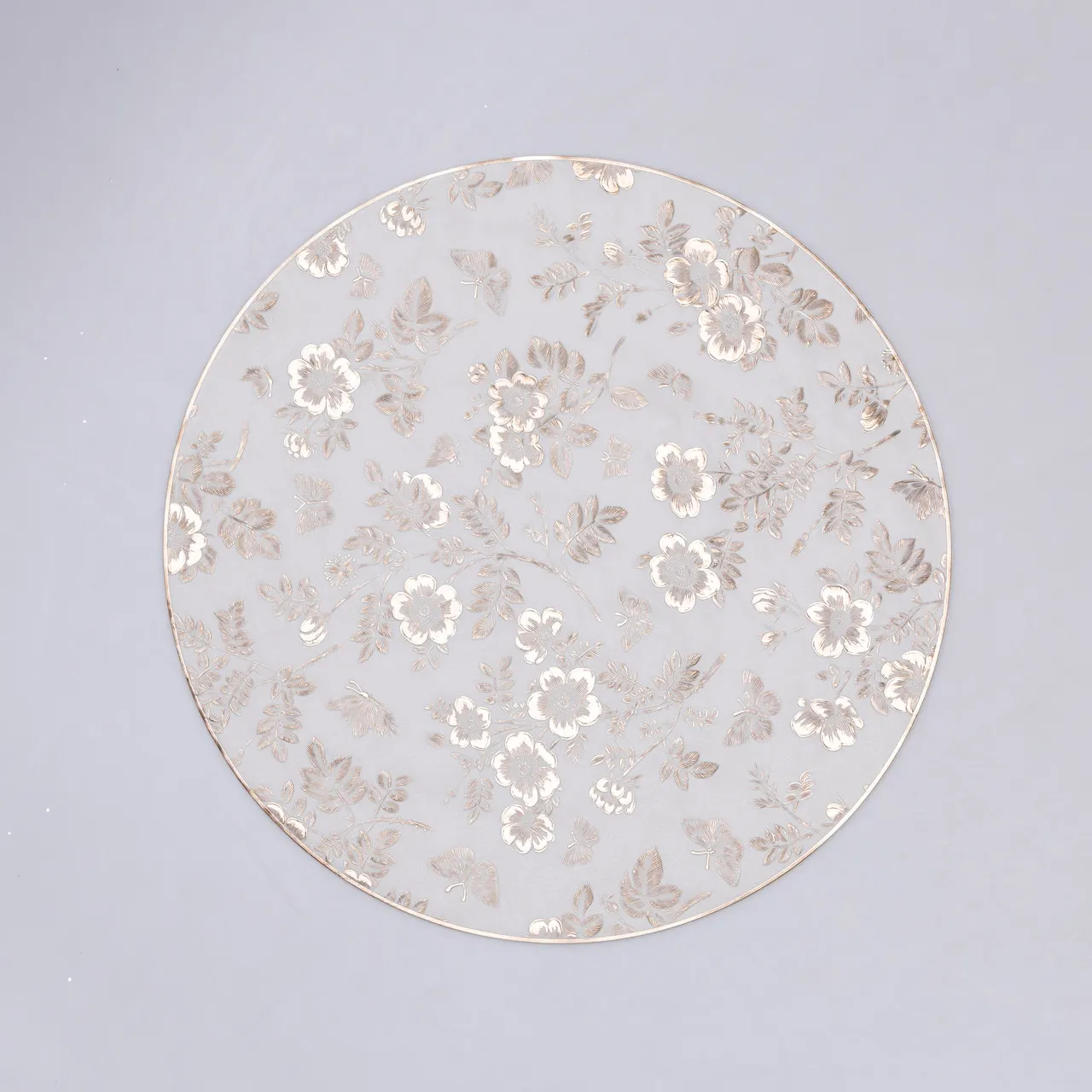 Коврик для сервировки стола Flowers 38 см золото HP-36327-12GOLD представляет собой стильный и практичный аксессуар для оформления столовой зоны. Изделие выполнено из прочного материала ПВХ, который обеспечивает долгий срок службы и надежную защиту поверхности стола от загрязнений и механических повреждений. Его диаметр составляет 38 см, что делает коврик универсальным для размещения посуды и столовых приборов любого типа.