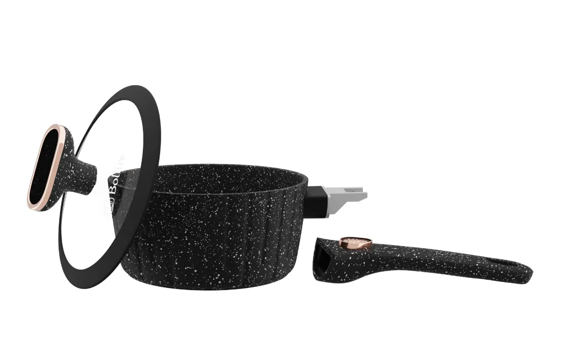 Натуральний алюміній з антипригарним покриттям Pfluon Marble ззовні забезпечує легкий догляд за посудом. Ковш має дно, що рівномірно розподіляє тепло, ідеально підходячи для різних типів плит, зокрема й індукційних.