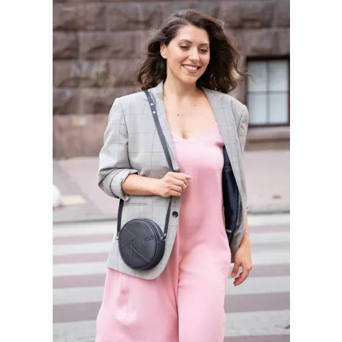 Кожаная круглая женская сумка Бон-Бон темно-синяя