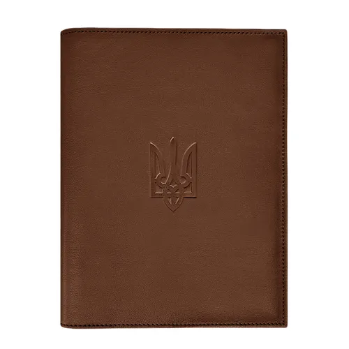 Данная кожаная обложка предназначена для нотариального реестра и украшена тиснением в виде Трезубца, который является символом национальной гордости Украины. Изготовленная из натуральной кожи типа краст, она сочетает в себе эстетическую привлекательность и высокую износостойкость.