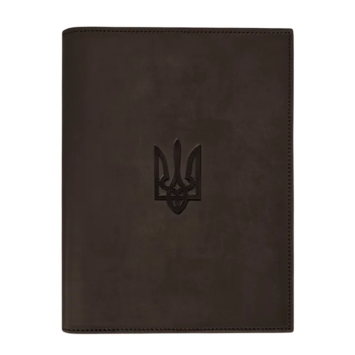Характеристики "Кожаная обложка для нотариального реестра с Тризубом темно-коричневая Crazy Horse"