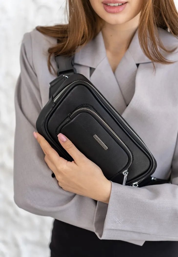 Кожаная поясная сумка-бананка Трапеция черная