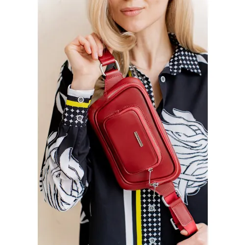 Кожаная поясная сумка-бананка Трапеция красная