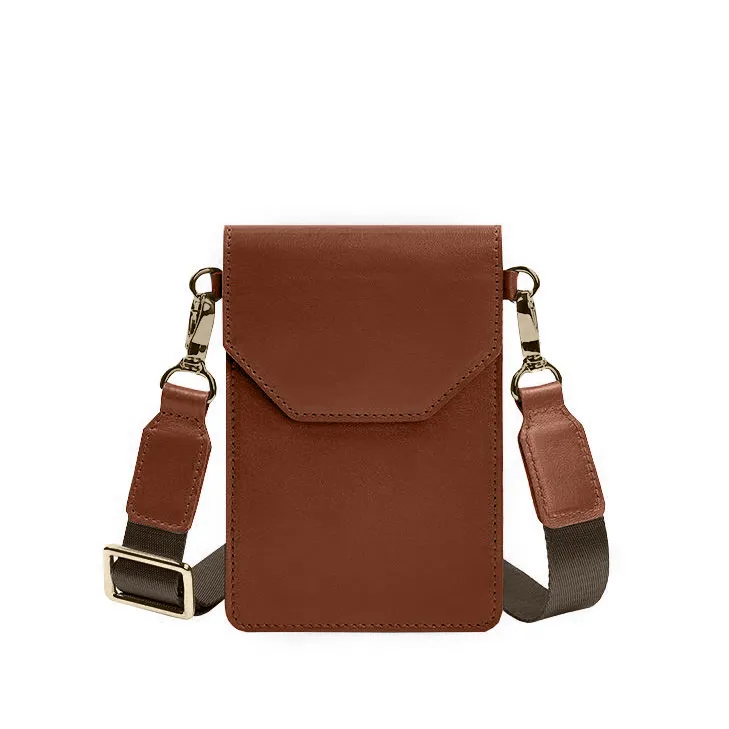 Кожаная сумка для телефона maxi Светло-коричневая