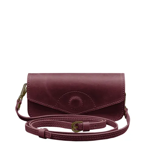 Кожаная сумка-футляр для очков (мини-сумка) бордовый Crazy Horse