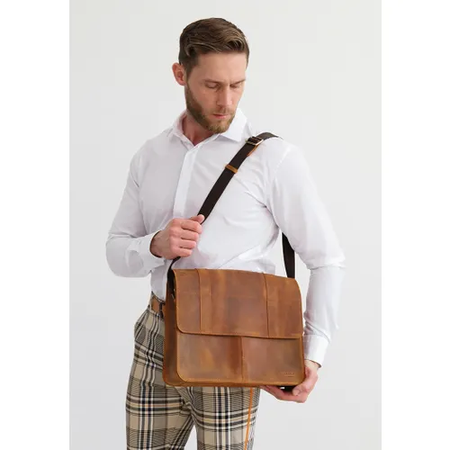 Кожаная сумка-портфель Classic светло-коричневый Crazy Horse с эффектом Pull Up